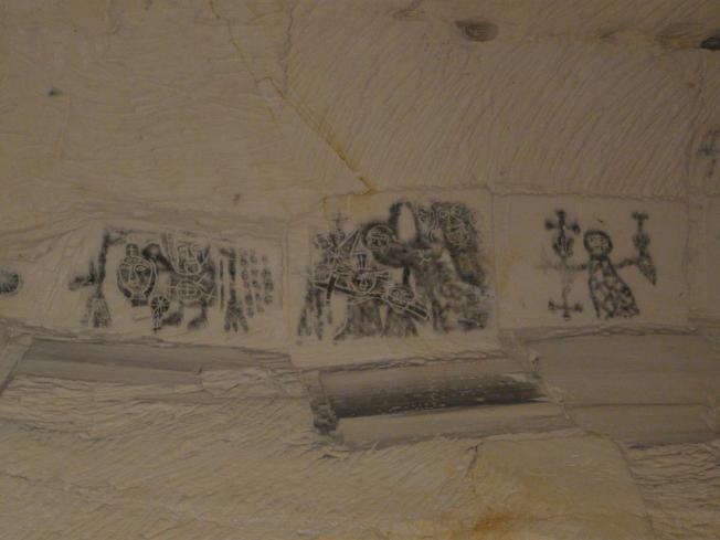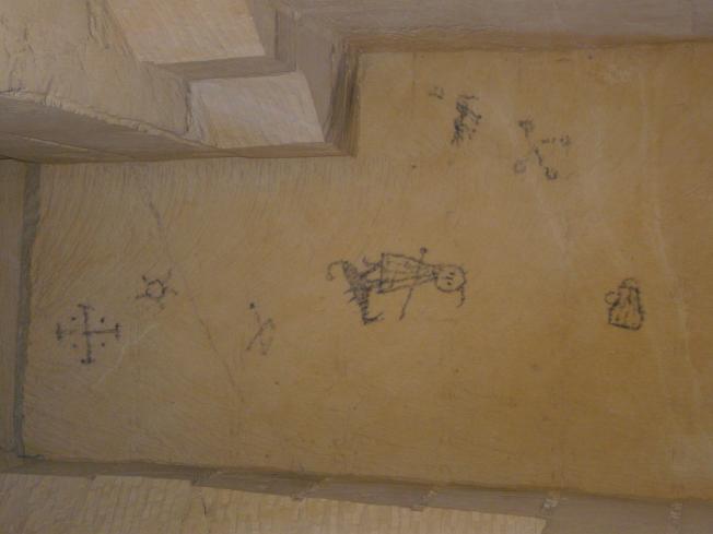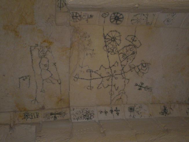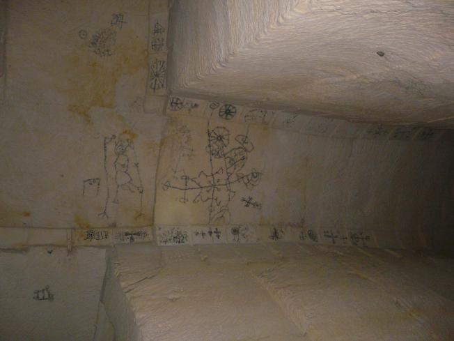 Die folgenden Ruß-Zeichnungen befinden sich an der Decke der Stollen,