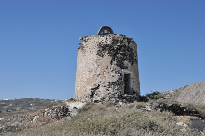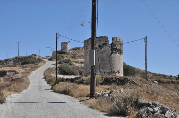 Einige wenige der mehreren Dutzend Windmühlen auf Santorin,