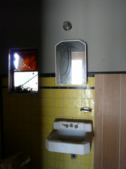 hängen die Waschbecken immer noch an der Wand und der
