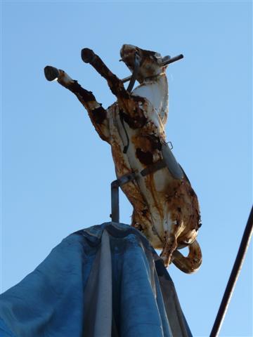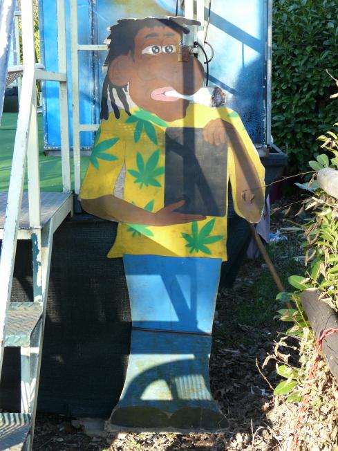 diese Figur steht neben einem Kindertrampolin...
