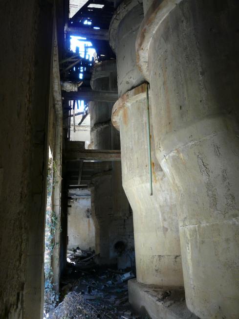 Silos noch bis unters Dach. Die Stege die einst von