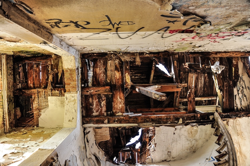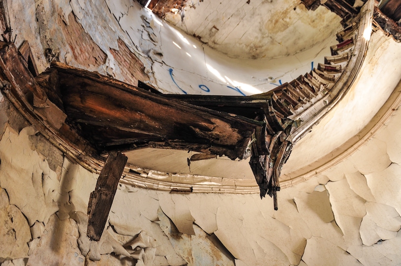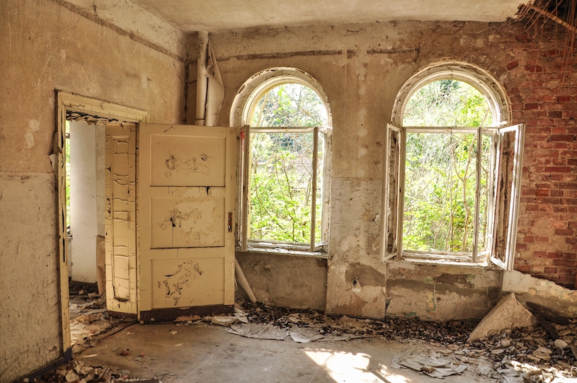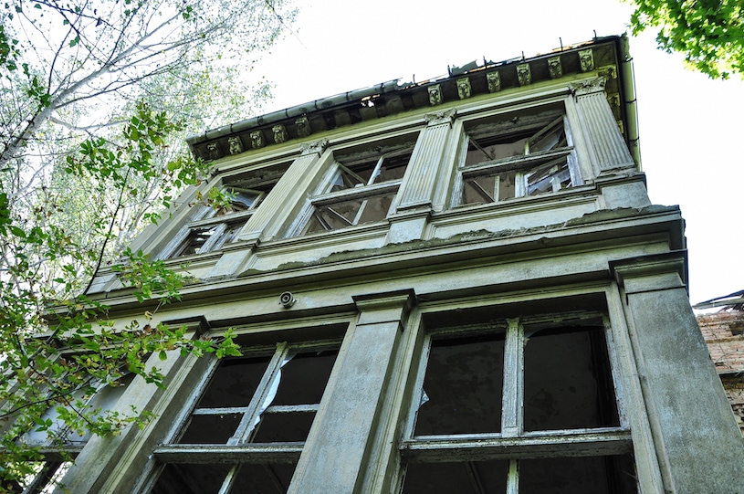 Der einzige noch existierende Teil der Fabrik sind die Mauern der