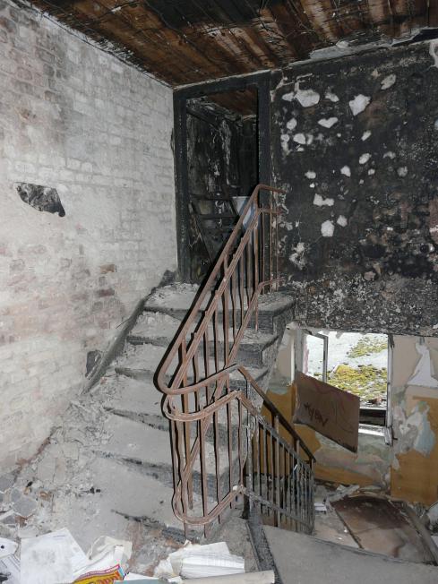 Alles zerstört und in Brand gesetzt, nur eine einsame