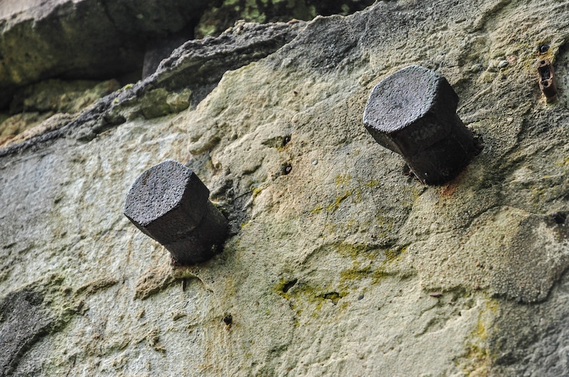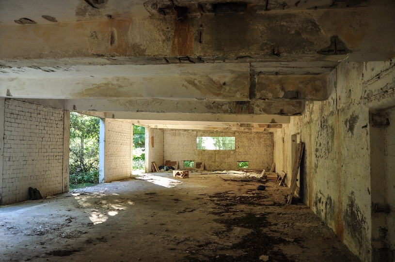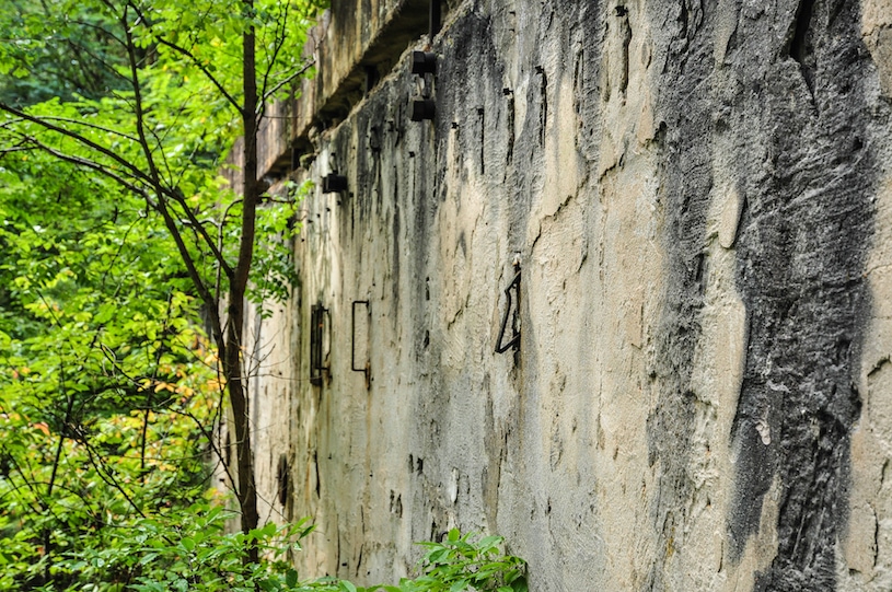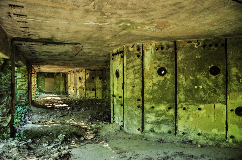 verbunden kleine Gebäude zur Überwachung, teilweise ergänzt durch verbunkerte Lagerräume.
