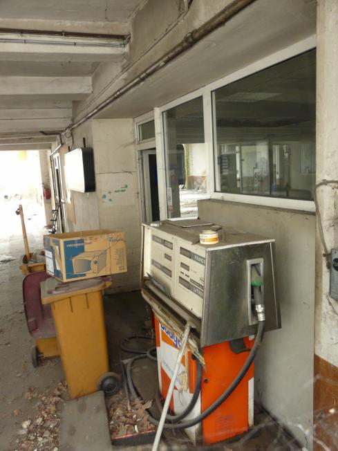 Verlassene Autovermietung - die Zapfsäule noch mit Franc als